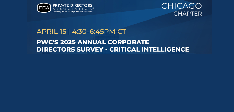 On April 15, 2026, Jayne Juvan will be speaking in Chicago at a program hosted by the Private Director’s Association, focused on insights from PwC’s 2025 Annual Corporate Director’s Survey – Critical Intelligence for Today’s Directors.